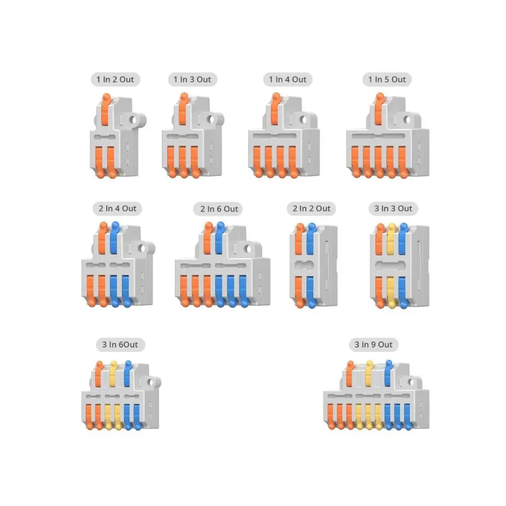 Sonoff wire splice connectors and splitters help you to connect and split wires quickly, easily and safely. This kit includes 10 different splitters such as one-way input and three-way output, two-way input, six-way output and many more.